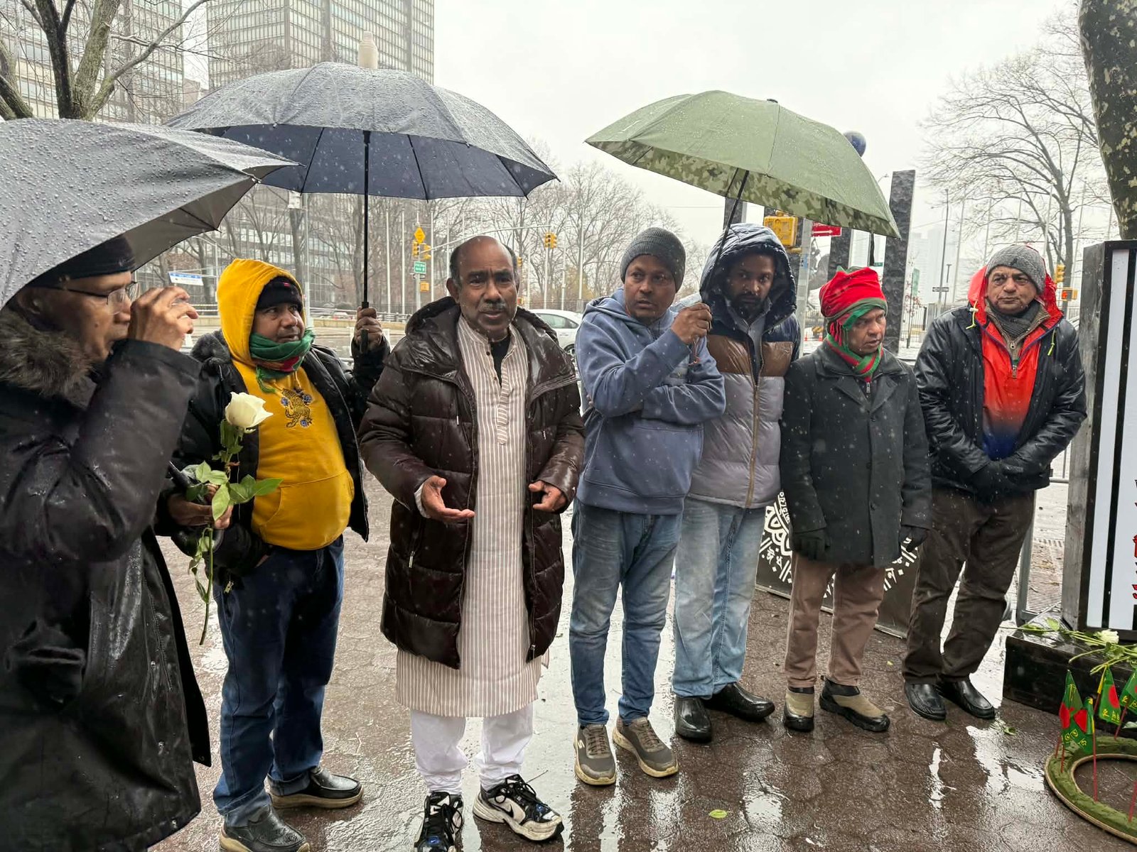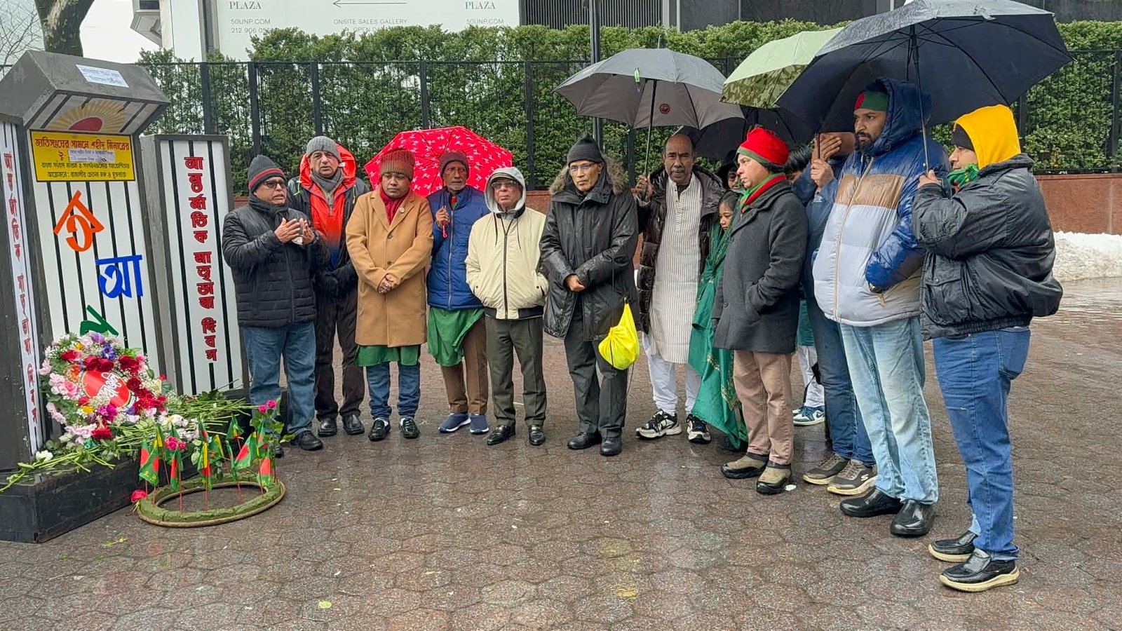 একটানা দীর্ঘ্ ৩৫ বছর উপস্থিত সর্বকণিষ্ঠ শিশুর শহীদ বেদীতে পুষ্পার্ঘ্য অর্পণের মাধ্যমে জাতিসংঘের সদর দফতরের সামনে বাংলাদেশ সময়ের সাথে মিলিয়ে নিউ ইয়র্কে একুশ ও আনন্তর্জাতিক ভাষা দিবস উদযাপিত হয়। প্রচন্ড বৃষ্টি ও বিরূপ আবহাওয়ার মধ্যে সম্মিলিত কন্ঠে ভাষা দিবসের গান, কবিতা আবৃত্তি ও আলোচনা অনুষ্ঠানের মধ্য দিয়ে দিবসটি পালিত হয়। মুক্তধারা ফাউন্ডেশনের প্রতিষ্ঠাতা ও প্রধান নির্বাহী বিশ্বজিত সাহার পরিচালনায় অনুষ্ঠিত আলোাচনা অনুষ্ঠানে জাতিসংঘের অবসরপ্রাপ্ত সিনিয়র অর্থনীতিবিদ ও নিউ ইয়র্ক আন্তর্জাতিক বাংলা বইমেলার ২০২৬ সালের আহ্বায়ক ড. নজরুল ইসলাম বক্তব্য রাখেন। তাঁর বক্তব্যে ১৯৯২ সাল থেকে জাতিসংঘের সদর দফতরের সামনে একুশ উদযাপন এবং বইমেলা শুরুর গুরুত¦ আরোপ এবং পরবর্তীতে প্রবাস জীবনে তার প্রভাব বিস্তারের কথা তুলে ধরেন। ভাষা আন্দোলন, একাত্তরের মুক্তিযুদ্ধ এবং বাংলাদেশের স্বাধীনতার বিভিন্ন দিক তুলে ধরেন। আলোচনা অনুষ্ঠানে বাঙালির চেতনা মঞ্জের চেয়ারম্যান আব্দুর রহিম বাদশা, বাংলাদেশ সোসাইটির সাবেক সাংগঠনিক সম্পাদক সিরাজউদ্দীন আহমেদ, ব্রঙ্কস সোসাইটির জহির উদ্দীন ও বিজয় সাহা বক্তব্য রাখেন।
