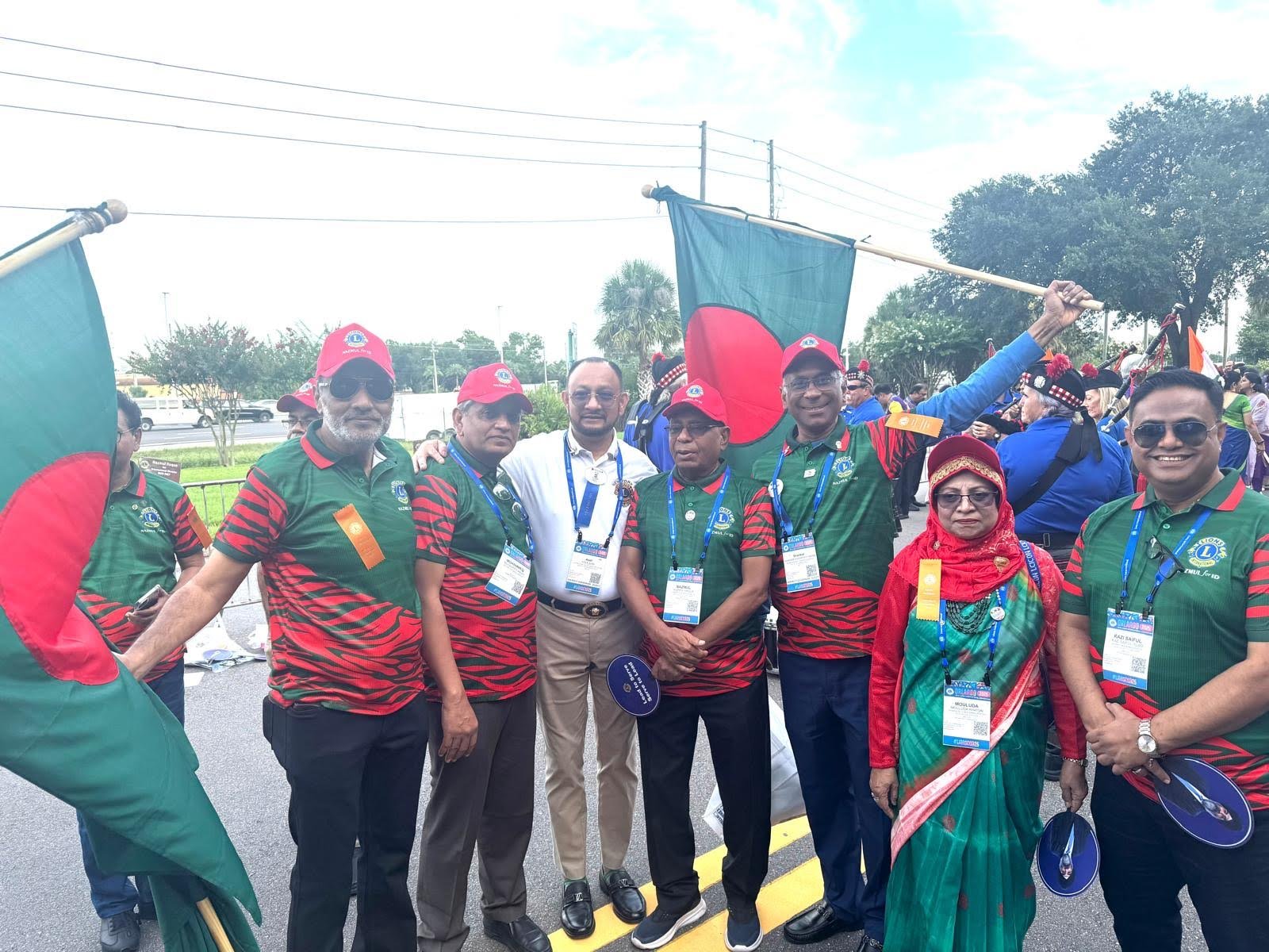 প্যারেড অফ নেশনস এ অংশগ্রহণ : গত ১৪ জুলাই সোমবার সকালে অনুষ্ঠিত হয় লায়ন্স কনভেনশনের অন্যতম আকর্ষণীয় দিক, “প্যারেড অফ নেশনস”। বিশ্বের প্রতিটি দেশের এবং লায়ন্স ইন্টারন্যাশনালের প্রতিটি ডিস্ট্রিক্টের প্রতিনিধিরা তাদের নিজস্ব সংস্কৃতি ও ঐতিহ্যের প্রতীকী পোশাক পরিধান করে এই বর্ণিল শোভাযাত্রায় অংশ নেন। এই প্যারেডে লায়ন্স ইন্টারন্যাশনালের ইনকামিং প্রেসিডেন্ট এ.পি. সিং, প্রাক্তন প্রেসিডেন্টগণ এবং বিশ্বের অন্যান্য শীর্ষস্থানীয় লায়ন্স নেতৃবৃন্দ উপস্থিত ছিলেন। এই বর্ণিল শোভাযাত্রায় আসেফ বারী শুধু নিউ ইয়র্কের ডিস্ট্রিক্ট ২০-আর২ এর প্রতিনিধিত্ব করেননি, একজন বাঙালি বংশোদ্ভূত লায়ন্স নেতা হিসেবে তিনি বাংলাদেশ থেকে আগত লায়ন্স সদস্যদের সঙ্গেও তাদের প্যারেডে অংশ নেন। তার এই দ্বৈত অংশগ্রহণ বিশ্বজুড়ে লায়ন্সদের মধ্যে বৈচিত্র্য এবং অন্তর্ভুক্তির এক চমৎকার বার্তা বহন করে। প্যারেড চলাকালীন, গভর্নর আসেফ বারী লায়ন্স ইন্টারন্যাশনালের ইনকামিং প্রেসিডেন্ট এ.পি. সিং সহ অন্যান্য আন্তর্জাতিক পরিচালক এবং নেতৃবৃন্দের সঙ্গে শুভেচ্ছা ও কুশল বিনিময় করেন, যা তার ক্রমবর্ধমান আন্তর্জাতিক পরিচয়ের ইঙ্গিত দেয়। হাজার হাজার লায়ন্স সদস্য নিজ নিজ দেশের পতাকা হাতে, বিভিন্ন রঙের পোশাকে সেজে এই প্যারেডে অংশ নেন, যা বিশ্বজুড়ে লায়ন্সদের একতা ও বৈচিত্র্যের এক চমৎকার প্রদর্শনী ছিল। এটি শুধু একটি শোভাযাত্রা ছিল না, বরং মানবতার সেবায় নিবেদিত এই বিশাল পরিবারের বিশ্বজনীন বন্ধনের এক জীবন্ত প্রতিচ্ছবি।