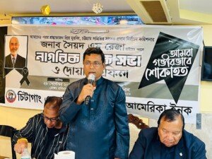 গত ২৮ সেপ্টেম্বর, রবিবার সন্ধ্যায় ব্রকলিনস্থ ‘চট্টগ্রাম ভবন’ এ চিটাগাং এসোসিয়েশন অব নর্থ আমেরিকা ইনকের উদ্যোগে সদ্য প্রয়াত সমিতির সাবেক প্রধান নির্বাচন কমিশনার, প্রতিষ্ঠানটির আজীবন সদস্য, ব্রæকলিন তথা নিউইয়র্ক এর একজন গুণীজন সৈয়দ এম রেজা স্মরণে নাগরিক শোকসভা অনুষ্ঠিত হয়। কার্যকরী কমিটির সম্মানিত সভাপতি মোহাম্মদ আবু তাহের এর সভাপতিত্বে শোকসভাটি অত্যন্ত ভাবগাম্ভীর্যের মধ্য দিয়ে পরিচালিত হয়।