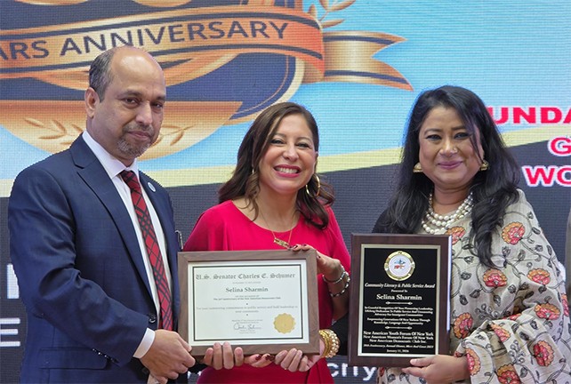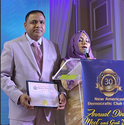 গত ১১ জানুয়ারি সন্ধ্যায় কুইন্সের উডসাইডে গুলশান টেরেসে নিউইয়র্কে বাংলাদেশি আমেরিকানদের মূলধারার সংগঠন ‘নিউ আমেরিকান ইয়ুথ ফোরাম’, ‘নিউ আমেরিকান ডেমোক্রেটিক ক্লাব’ এবং ‘নিউ আমেরিকান উইমেন’স ফোরাম’র বার্ষিক ডিনার এবং মিট অ্যান্ড গ্রিট অনুষ্ঠিত হয়েছে। বর্ণাঢ্য এ অনুষ্ঠানে বিভিন্ন ক্ষেত্রে অবদান রাখার জন্য বিভিন্ন ব্যক্তি ও প্রতিষ্ঠানকে সম্মাননা জানানো হয়।
