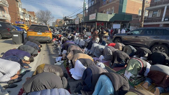 বায়তুল জান্নাহ জামে মসজিদ : ব্রুকলীনের বায়তুল জান্নাহ জামে মসজিদ এন্ড মুসলিম কমিউনিটি সেন্টারের উদ্যোগে স্থানীয় ৫৬৯ ম্যাকডোনাল্ড এভিনিউতে খোলা রাস্তায় একটি ঈদের নামাজ অনুষ্ঠিত হয় সকাল সাড়ে নয়টায়।