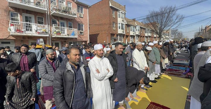 দীর্ঘ একমাস সিয়াম সাধনার পর ধর্মীয় ভাবগম্ভীর পরিবেশে শুক্রবার (২০ মার্চ) নিউইয়র্ক সহ উত্তর আমেরিকায় পবিত্র ঈদুল ফিতর উদযাপিত হয়েছে। সৌদী আরবের ঘোষণার পর যুক্তরাষ্ট্র সহ বিশ্বের বিভিন্ন দেশে ঈদুল ফিতর উদযাপনের সিদ্ধান্ত হয়। ঈদ উপলক্ষ্যে উত্তর আমেরিকার মুসলিম কমিউনিটিতে উৎসবের আমেজ বিরাজ করছে। ধর্মপ্রাণ মুসলিম কমিউনিটির শিশু-কিশোর সহ বয়োবৃদ্ধরাও রং বে রং এর নতুন পোশাক পড়ে সপরিবারে বিভিন্ন ঈদের জামাতগুলোতে অংশ নেন। সিটির অর্ধ শতাধিক মসজিদ আর ইসলামিক সেন্টার ছাড়াও খোলা মাঠে একাধিক ঈদের জামাত অনুষ্ঠিত হয়। ঈদ উদযাপনের মূল অনুষ্ঠান ঈদের জামাতে ছিলো সর্বস্তরের নর-নারীর অংশগ্রহন। ঠান্ডার মধ্যেও ধর্মপ্রাণ হাজার হাজার মুসলিম সপরিবারে বিভিন্ন ঈদের জামাতে অংশ নেন।