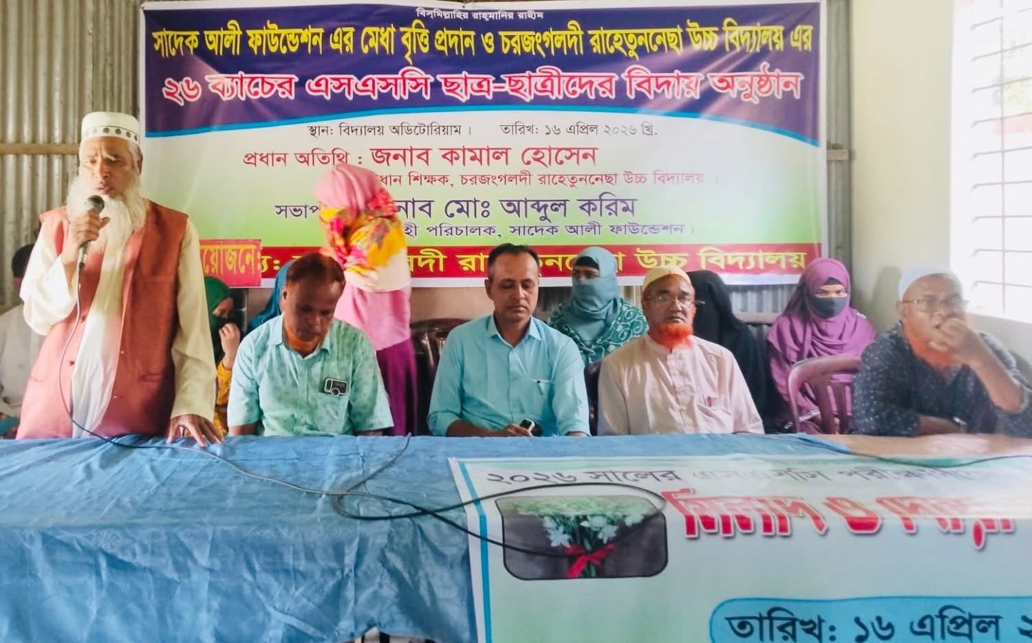 শেরপুরে নিউ ইয়র্ক প্রবাসী সাংবাদিক আবুল কাশেম প্রতিষ্ঠিত সাদেক আলী ফাউন্ডেশনের মেধা বৃত্তি প্রদান ও এস এস সি পরীক্ষার্থীদের বিদায় সংম্বর্ধনা অনুষ্ঠান হল গত ১৬ এপ্রিল শেরপুর সদরের চরজংগলদী রাহেতুন নেছা উচ্চ বিদ্যালয়ের অডিটোরিয়মে। বিদ্যালয়ের পরিচালনা কমিটি কর্তৃক আয়োজিত অনুষ্ঠানে প্রধান অতিথি হিসাবে উপস্থিত ছিলেন স্কুলের প্রধান শিক্ষক মোঃ কামাল হোসেন, সাদেক আলী ফাউন্ডেশনের নির্বাহী পরিচালক মোঃ আব্দুল করিম – এর সভাপতিত্বে অনুষ্ঠানে বিশেষ অতিথি হিসেবে উপস্থিত ছিলেন স্কুলের সহকারী প্রধান শিক্ষক মোহাম্মদ হাবিবুর রহমান, সহকারী শিক্ষক আজহারুল ইসলাম বকুল, সহকারী শিক্ষক এম, এ জলিল প্রমুখ।