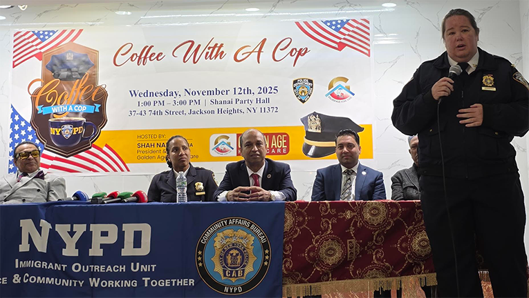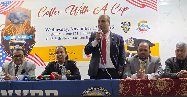 কমিউনিটির নিরাপত্তা বিধানে ব্যতিক্রমি উদ্যোগ গ্রহণ করে জনপ্রিয় হোম কেয়ার দানকারী প্রতিষ্ঠান ‘গোল্ডেন এজ হোম কেয়ার’ আয়োজন করেছে ‘কফি উইথ এ কপ’। নিউ ইয়র্ক সিটির পুলিশ বাহিনী- এনওয়াইপিডি আউটরিচ ইউনিট,এনওয়াইপিডি ক্রাইম প্রিভেনশন টিম এবং এনওয়াইপিডির বিভিন্ন প্রিসিঙ্কটের দায়িত্বশীল কর্মকর্তাদের উপস্থিতিতে মতবিনিময় অনুষ্ঠানে বাংলাদেশি কমিউনিটির ব্যক্তিবর্গের কাছে খোলা-মেলাভাবে তাদের বক্তব্য তুলে ধরেন এবং নাগরিকদের কি কি অধিকার এবং করণীয় বিষয়ে আলোকপাত করেন। পুলিশ কর্মকর্তারা বলেছেন, যে কোন ব্যক্তির ইমিগ্রেশন স্ট্যাটস যাই হোক না কেন, যে কোন সমস্যায় পুলিশের সাথে নির্ভয়ে যোগাযোগ করতে পারেন। আমরা নিউইয়র্ক সিটিকে নিরাপদ রাখতে কমিউনিটির সবার সাথে নিবিড়ভাবে কাজ করে যেতে চাই।