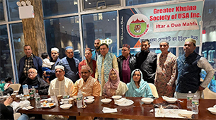 যথাযথ ধর্মীয় ভাবগম্ভীর পরিবেশে গত ২৮শে ফেব্রুয়ারী শনিবার ১১তম রমজানেঅনুষ্ঠিত হয়ে গেলো গ্রেটার খুলনা সোসাইটি অব ইউএসএ ইনক্ এর বার্ষিক ইফতার ও দোয়া মাহফিল । সুন্দর আবহাওয়া ও মনোরম পরিবেশে জ্যাকসন হাইটসের শেফ মহল রেস্টুরেন্টে অনুষ্ঠিত হয় এই সুন্দর আয়োজনটি । শতাধিক অতিথি ও সংগঠনের কর্মকর্তাদের পরিবার ও পরিজন এই অনুষ্ঠান উপভোগ করেন। প্রধান অতিথির আসন অলংকৃত করেন বাংলাদেশ সোসাইটির সন্মানিত সভাপতি জনাব আতাউর রহমান সেলিম । বিশেষ অতিথি হিসেবে উপস্থিত ছিলেন বাংলাদেশ সোসাইটির সিনিয়র সহ-সভাপতি জনাব মহিউদ্দিন দেওয়ান,