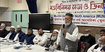 নিউইয়র্কের ইমাম ও আলেমগণের সাথে ডিনার ও মতবিনিময় সভা করেছে মুসলিম উম্মাহ অব নর্থ আমেরিকা-মুনা। বুধবার (৪ ফেব্রুয়ারী) সন্ধ্যায় সিটির ব্রুকলনীনস্থ বায়তুল মামুর মসজিদ মিলনায়তনে এই সভার আয়োজন করা হয়। সভায় বাংলাদেশের আসন্ন জাতীয় নির্বাচনে সৎ ও যোগ্য নেতৃত্ব প্রতিষ্ঠায় প্রবাসের ইমাম ও আলেম সমাজ ভূমিকার রাখতে পারেন বলে অভিমত ব্যক্ত করা হয়।