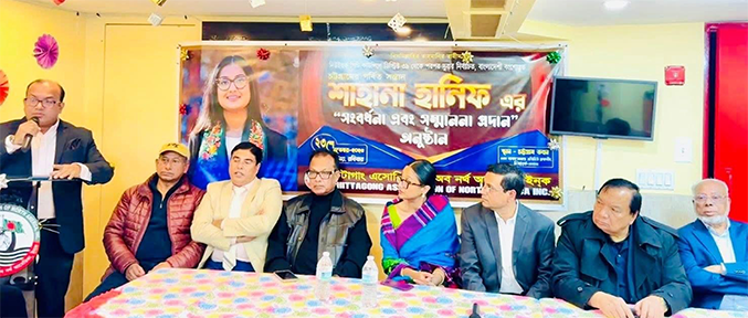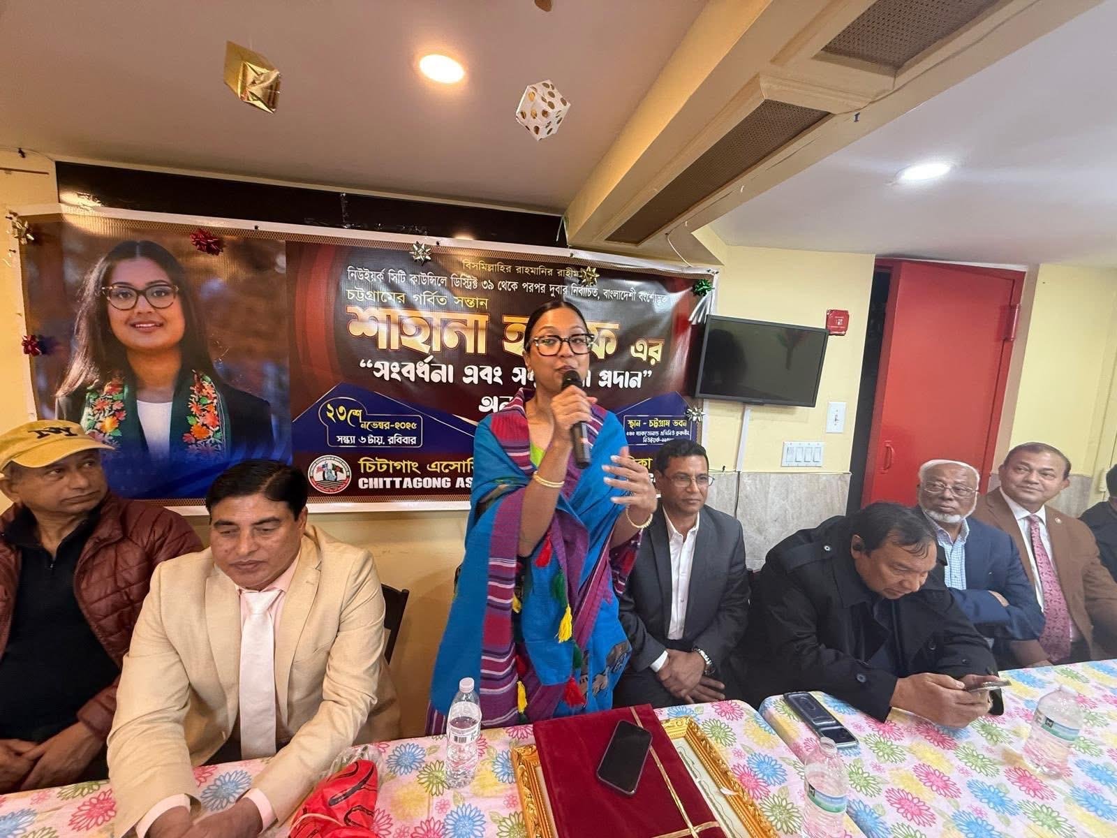 চিটাগং এসোসিয়েশন অফ নর্থ আমেরিকা ইনকের আয়োজনে নিউইয়র্ক সিটি কাউন্সিলের নির্বাচনে ব্রুকলিনের ডিস্ট্রিক্ট ৩৯ থেকে পরপর দুইবার বিপুল ভোটে নির্বাচিত কাউন্সিলর, চট্টগ্রামের মাটির সন্তান, বাংলাদেশের গৌরব, নিউইয়র্ক সিটির ইতিহাসে সর্বপ্রথম বাংলাদেশী মুসলিম কাউন্সিলর শাহানা হানিফ এর সংবর্ধনা এবং সম্মাননা প্রদান অনুষ্ঠিত হয়েছে।