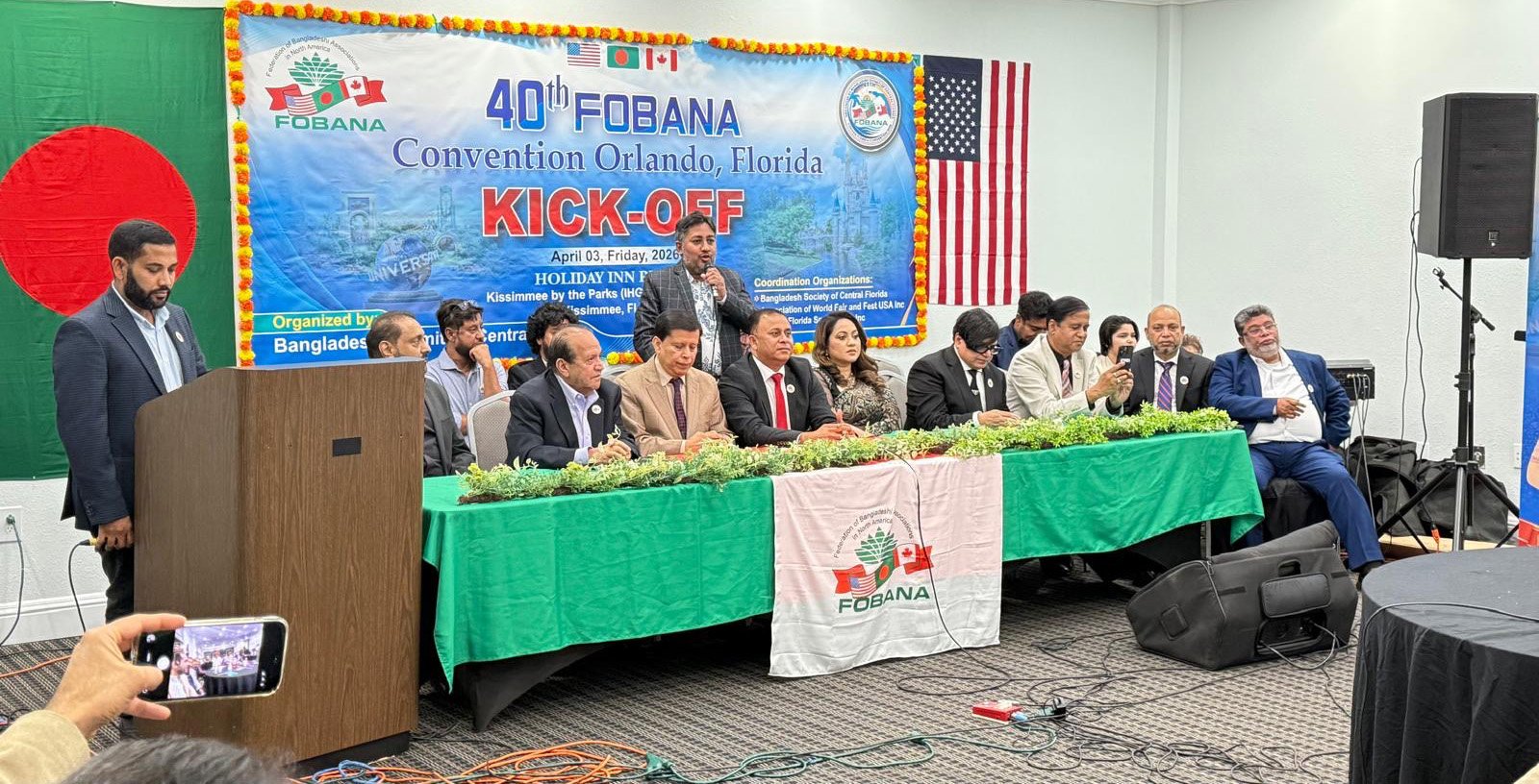 ফেডারেশন অব বাংলাদেশি অ্যাসোসিয়েশন ইন নর্থ আমেরিকা (ফোবানা)-এর ৪০তম কনভেনশন ২০২৬-এর “কিক-অফ”ফ্লোরিডার অরল্যান্ডোর ‘হলিডে ইন রিসোর্ট, বাই দ্যা পার্ক, কিসিমি’তে অনুষ্ঠিত হয়েছে গত ৩ এপ্রিল শুক্রবার সন্ধ্যায়।