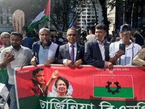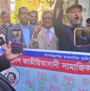 জাতিসংঘের ৮০তম সাধারণ অধিবেশনে বাংলাদেশের অন্তর্বরতী সরকারের প্রধান উপদেষ্টা ডক্টর মুহাম্মদ ইউনূসের ভাষণ প্রদানের দিন শুক্রবার (২৬ সেপ্টেম্বর) দুপুরে দলীয় ব্যানারে জাতিসংঘ ভবনের সামনে সমাবেশ করেছে কমিটি বিহীন যুক্তরাষ্ট্র বিএনপি’র সাবেক নেতৃবৃন্দ। ম্যানহাটানের ফাস্ট এভিনিউ ও সেকেন্ড এভিনিউ’র মাঝে ৪৭ স্ট্রীটের সমাবেশে সর্বস্তরের বিপুল সংখ্যক দলীয় নেতা-কর্মী অংশ নেন।